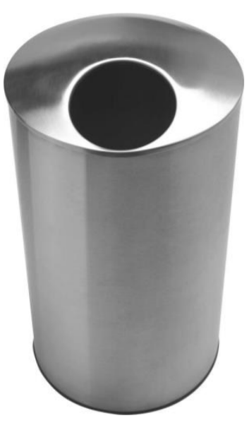 Изделие выполнено из нержавеющей стали AISI 304, толщиной 1 мм. Безусловными преимуществами являются: прочность и устойчивость к образованию коррозии и ржавчины. Устройство выполнено из термостатического материала. Емкость урны составляет 50 литров. В комплекте имеет съемную глянцевую крышку с отверстием для сбора отходов.