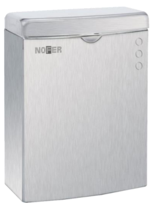 Контейнер прямоугольной формы выполнен в цвете хром. Устанавливается на стену. Не имеет замок безопасности на крышке.