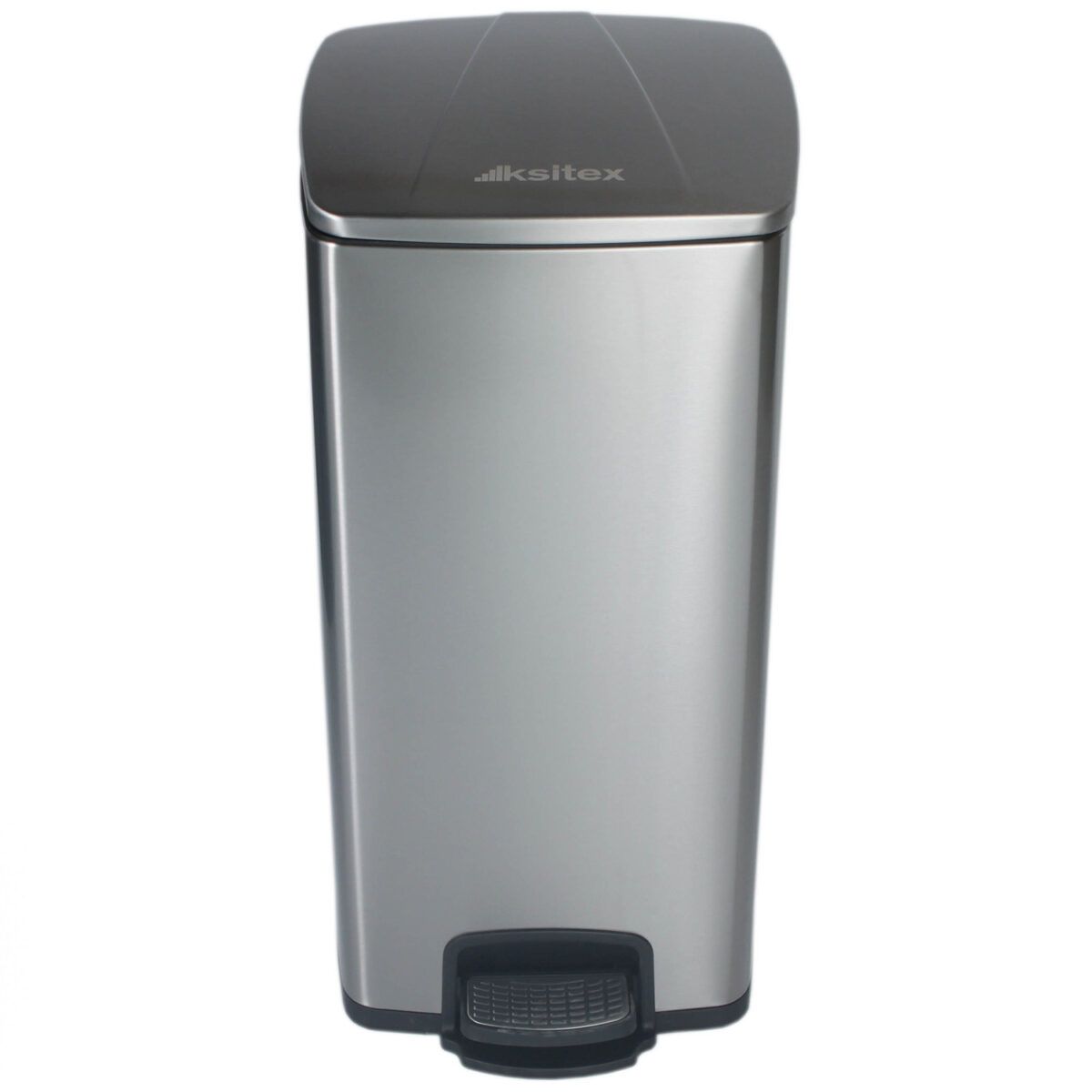 Крышка урны открывается при нажатии на педаль, без использования рук. Емкость урны составляет 30 литров. Внутри расположен черный пластиковый бак.