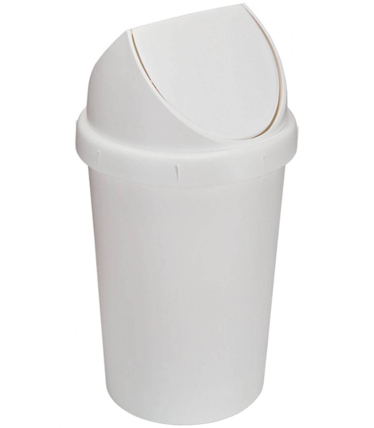 Напольный контейнер округлой формы с опрокидывающейся крышкой выполнен в белом цвете с глянцевой поверхностью, отличается универсальным дизайном, который впишется в интерьер общественных заведений.