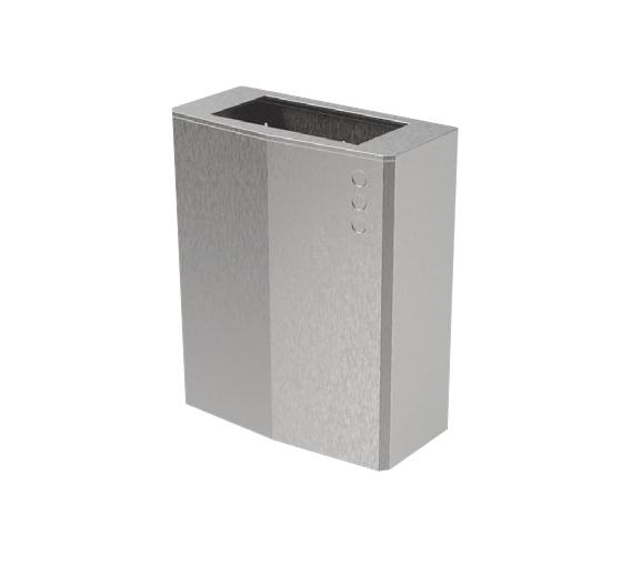 Контейнер располагается на стене, имеет зажим для пакета, выполнен в цвете хром с матовой поверхностью, отличается универсальным дизайном, который впишется в интерьер общественных заведений.