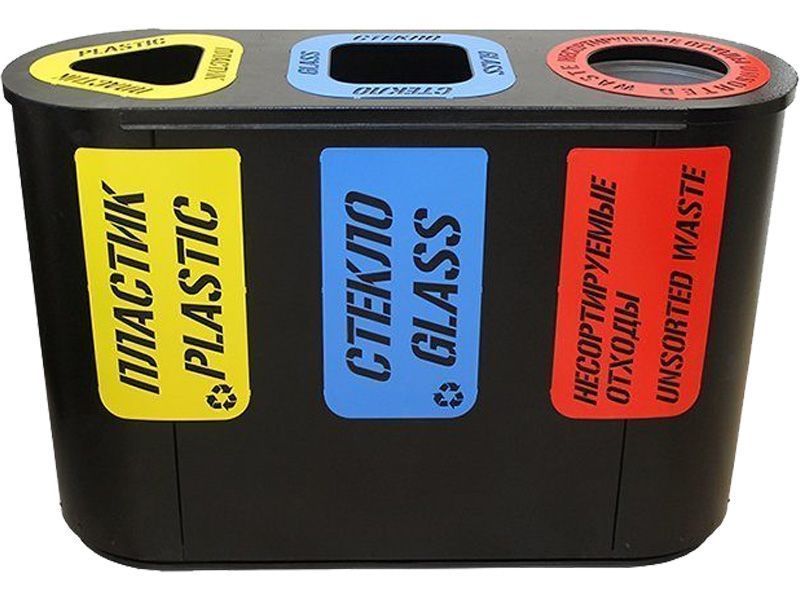 Урна для раздельного сбора мусора Город-3 (710) с метал. вставками пластик/стекло/несорт. отходы