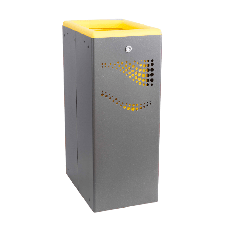 У ведер предусмотрено линейное соединение нескольких единиц, что позволяет соединять несколько мусорных ведер с окантовками разных цветов, позволяющими сортировать отходы. Устанавливается в помещении.