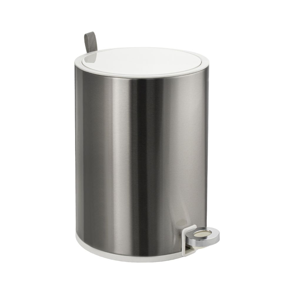 САНАКС - Ведро круглое 5л ЕВРОПА, ПНЕВМАТИКА с доводчиком, с ультратонкой БЕЛОЙ крышкой, из матовой нержавеющей стали с педалью, арт. 5555